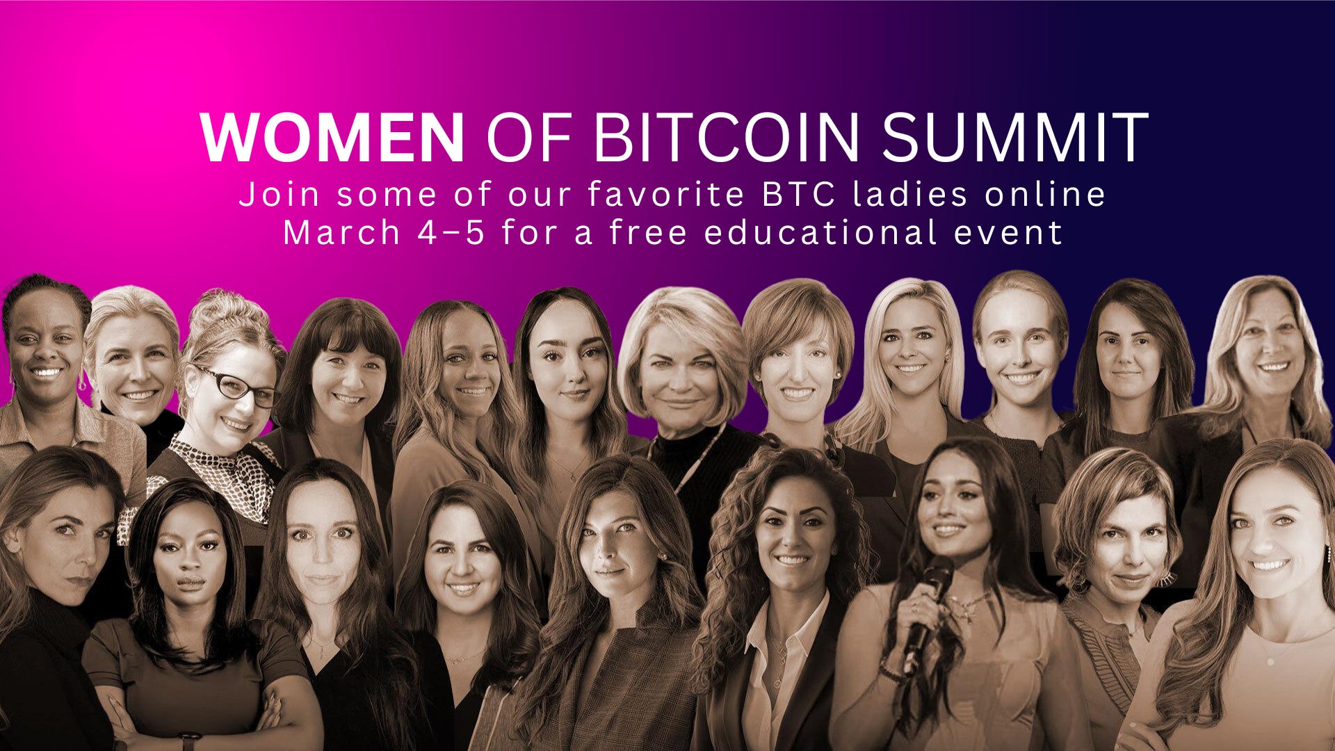 Join some of our favorite women in Bitcoin as they come together March 4–5, 2026, for the Women of Bitcoin Summit, a free virtual event designed to connect and educate women interested in the Bitcoin ecosystem.